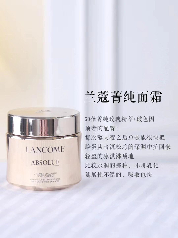 刚开始用可能就觉得肤感轻薄丝滑好吸收,但长期用几年下来会觉得,皮肤特别细腻有光泽,慢慢把皮肤给你调理好了的感觉,晚霜的质地也不挑人不挑肤,丝滑轻薄,用起来没什么负担,轻润不腻也比较好吸收。